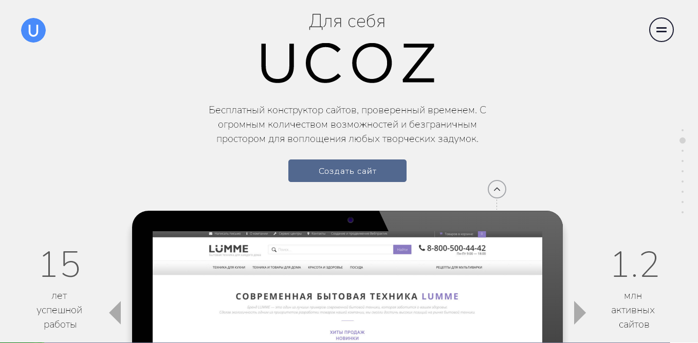 Еще один конструктор сайтов от разработчиков Ucoz, который позиционируется как инструмент для создания бизнес сайтов. Данный сервис подходит для сайтов-визиток, лендингов, портфолио и даже небольших интернет магазинов. К услугам пользователей продвинутый функционал продвижения и аналитики взаимодействия с аудиторией, которая позволит количественно оценить вовлеченность посетителей и процент продаж.